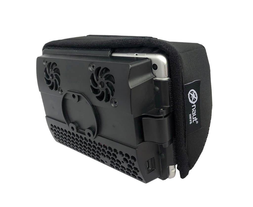 Mit dem Cockpit Visier für die X-Naut Cooling Cases werden Lichtspiegelungen auf dem iPad vermieden. Das Visier kann im Hoch- oder Querformat montiert werden. Die Anbringung erfolgt durch Klettklebestreifen am Rande des Cooling Case. So lässt sich das Visier einfach anbringen und entfernen.