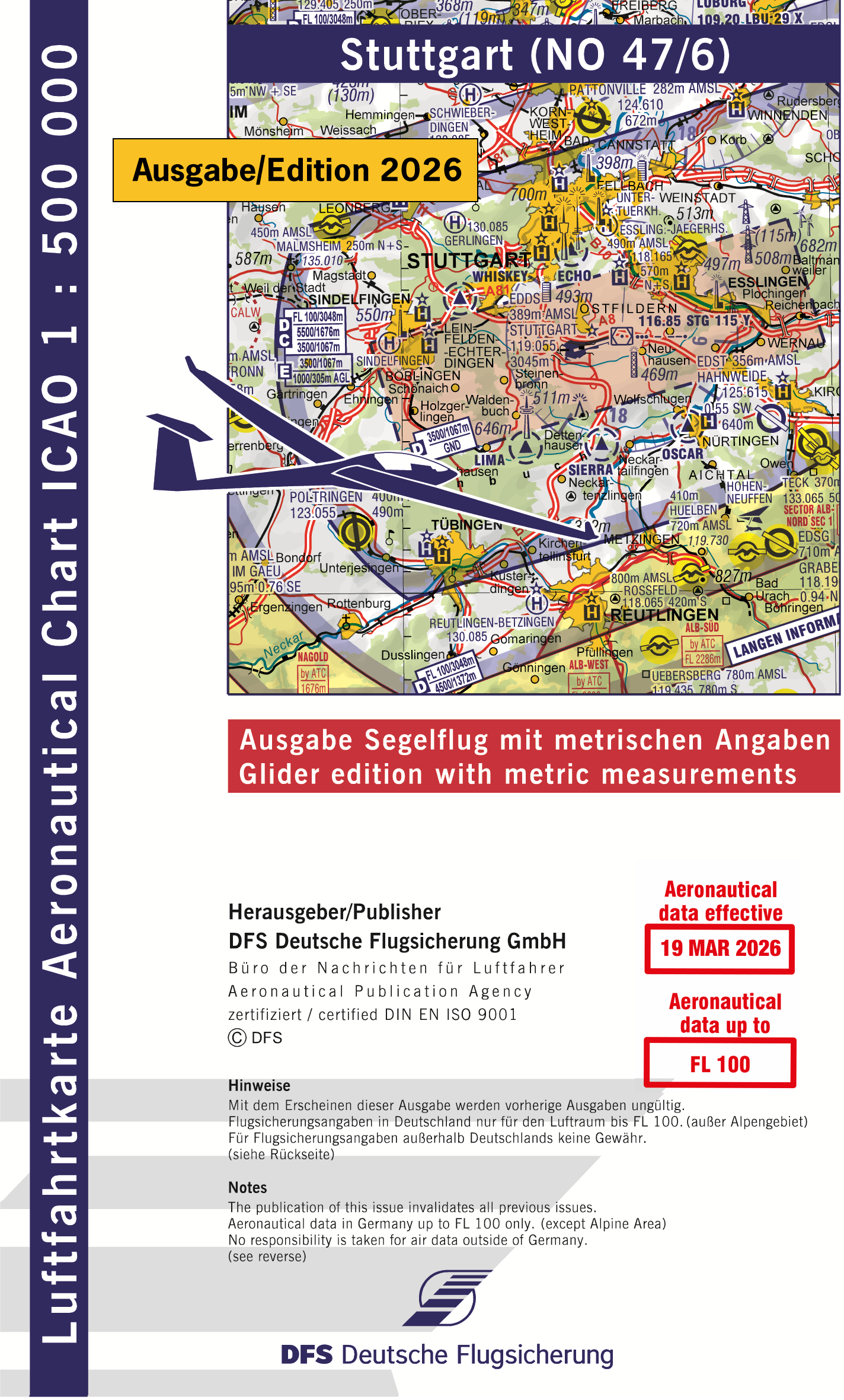 ICAO-Karte – Jahr 2026 – Segelflug – 1:500.000 – Stuttgart