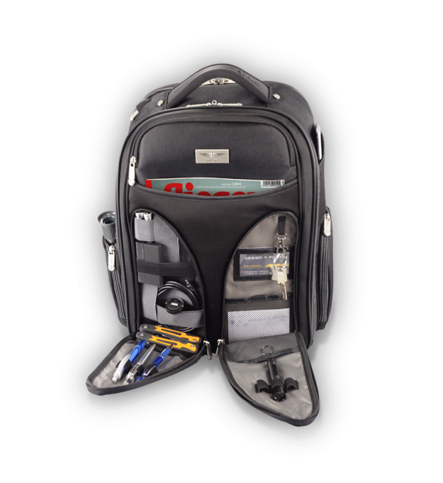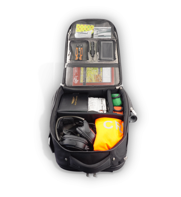 Laptopfach, Tabletfach, VFR-/IFR-Fächer, Brillenetui, Stifthalter, Kartenfächer, Rückentasche mit Diebstahlschutz – alles da, wo du’s brauchst.