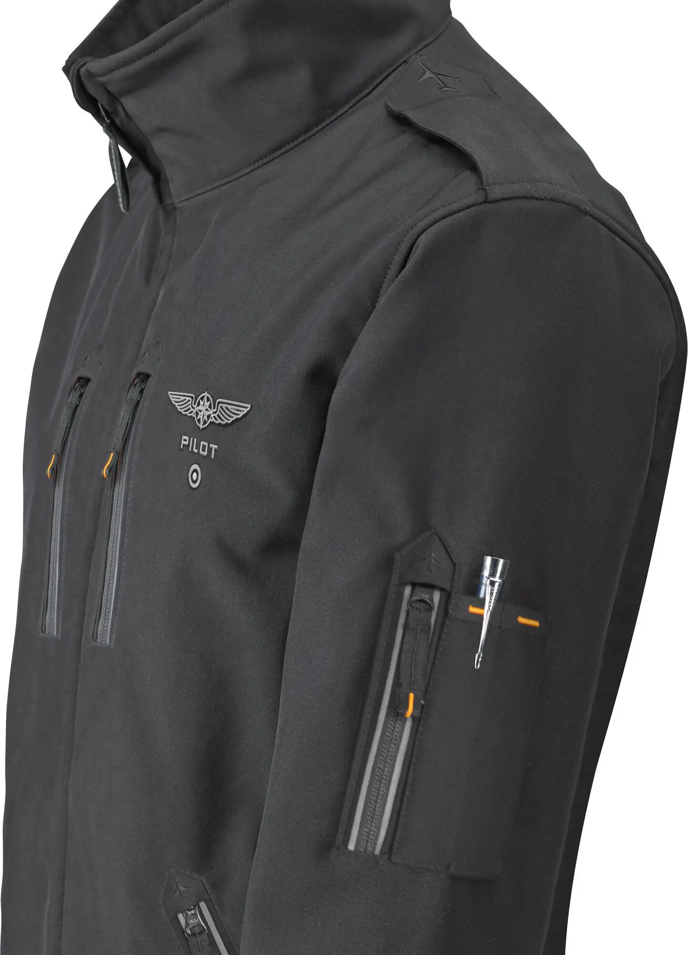Diese sportlich elegante Pilotenjacke ist aus recyceltem Softshellmaterial inkl. Warnweste. Sie ist angenehm zu tragen und bietet folgende Eigenschaften: