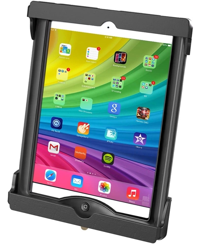 Die universelle, abschließbare Halteschale RAM-HOL-TABL11U besteht aus einer verstellbaren Rückplatte mit Spannfeder, einem Verschlussmechanismus und den passenden Endstücken zur Aufnahme von Apple iPad mini (mit Schutzhüllen). Durch die Spannfeder-Konstruktion ist es sehr einfach das Tablet einzulegen bzw. zu entfernen. Das Design der Endstücke ermöglicht den Zugang zu allen Anschlussbuchsen. Der Verschlussmechanismus schützt Ihr Tablet vor schneller Entnahme durch Unbefugte. Die Rückseite der Halteschale ist für die Aufnahme runder Basisplatten (B- oder C-Kugel) vorbereitet.